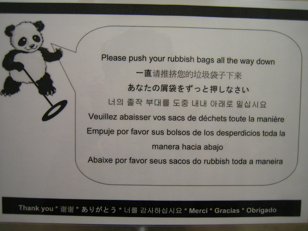 하하하하하 웃음밖에 안나오네여~ 한국사람이 별로 없으신 동내에 사시나 봐여? 근데 저 말은 진짜로 아직도 이해 못하고 있어여 '너의 졸작 부대를 도중 내내 아래로 밀십시요' 무슨말인지 ㅡ,.ㅡ;; 그냥 영어로는 쓰래기봉투를 아래로 밀어 내십시오. 그런 말인뎅 ㅡ,.ㅡ;;