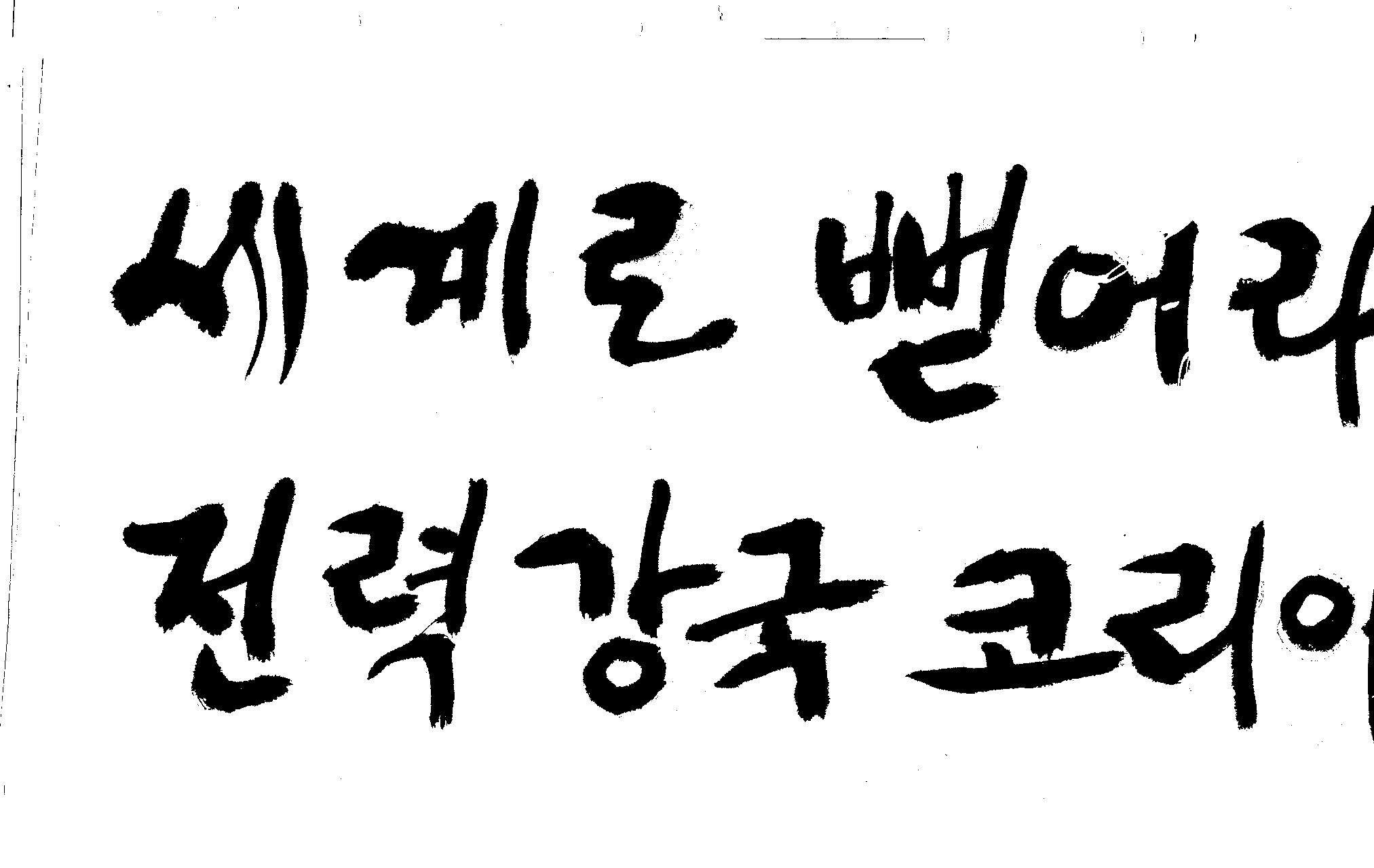 캘리 좀 부탁드려요!~ 김철호 일반 1 13012 2008.12.24 12:09 > > > > > > > > > 전력회사 신문광고를 하는데요 캘리로 멋지게 하고픈데 > > > 캘리프로그램으로 아무리 써도 느낌이 안나옵니다 ㅜ.ㅜ > > > 이런걸 부탁한다는 자체가 너무나도 염치없지만 부탁드립니다. > > > > > > 세계로 뻗어라! 전력강국 코리아 > > > > > 보기는 쉬워도 하기는 어려운게 > > 세상 모든 일 일겁니다. > > 그중에 캘리그라피가 그런 것일 겁니다... > > 스캔중에 글꼴이 잘린것은 서로다른글꼴서 편집하시길... > > 글수가 많아서 어쩔 수없네요... > > >