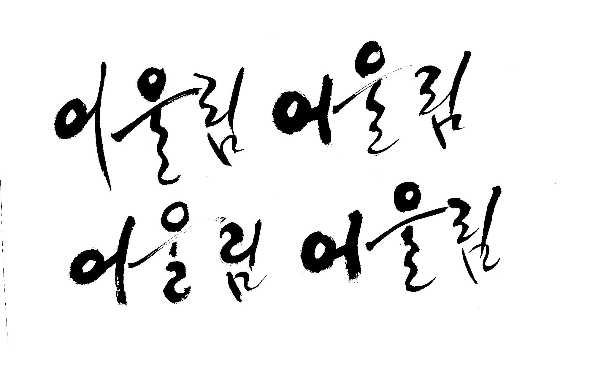 켈리 부탁좀 드릴께요~ 김철호 일반 0 11421 2009.01.14 10:49 > > > > > 책표지에 나갈 글씨로 '어울림'이란 켈리를 쓰고싶은데요... > > 도와주세요~ > > > 좋은 글이라서... > 긴....습작시간이 있었지만 > 결과물이 왜소하네요 > 유용하게 쓰시길... >